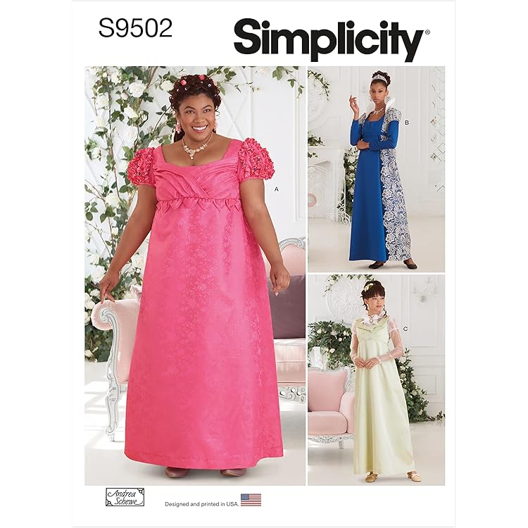 Amazon Com Simplicity Misses And Womens Regency Era Style Dresses 20w 22w 24w 26w 28w Arts Crafts Sewing